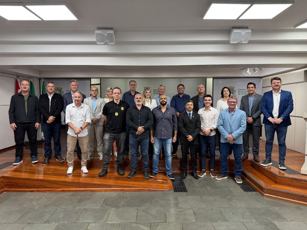 A Câmara Municipal de Chapecó fez, na quarta-feira (10), a entrega de moção de reconhecimento à 3ª Delegacia de Fronteira da Polícia Civil de Chapecó, pelo brilhante desempenho e conquista do 1º lugar na Avaliação da Satisfação na Qualidade do Atendimento, conforme Relatório de Avaliação da Satisfação na Qualidade do Atendimento das Unidades Policiais da Polícia Civil de SC edição 2024, parabenizando o comprometimento, dedicação e excelência na prestação de serviços à comunidade.